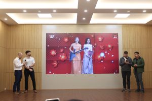Chương trình diễn ra trong không khí ấm áp, gần gũi với những lời chúc Tết và chia sẻ chân thành từ đại diện Nhà trường và các vị khách mời, thể hiện sự quan tâm sâu sắc tới đời sống tinh thần của sinh viên quốc tế; song song đó, những phần quà Tết được trao tận tay sinh viên quốc tế và sinh viên ngành Tiếng Anh Truyền thông như lời động viên, sẻ chia yêu thương dịp Xuân về.