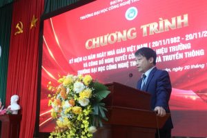 Hiệu trưởng PGS.TS Phùng Trung Nghĩa phát biểu nhân kỷ niệm 43 năm Ngày Nhà giáo Việt Nam, gửi lời tri ân sâu sắc đến các thế hệ giảng viên, đồng thời khẳng định quyết tâm xây dựng ICTU trở thành đơn vị tiên phong trong lĩnh vực công nghệ thông tin, truyền thông và chuyển đổi số của khu vực.