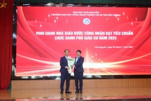 Trong không khí trang trọng ấy, Nhà trường thực hiện nghi thức tri ân các nguyên lãnh đạo, vinh danh tân Phó Giáo sư năm 2025, đồng thời tuyên dương các viên chức, người lao động có thành tích xuất sắc. Những bó hoa chúc mừng từ các tổ chức đoàn thể thể hiện sự ghi nhận, ủng hộ và đồng hành cùng ICTU trên chặng đường phát triển tiếp theo.