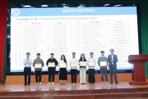 Trong khuôn khổ chương trình, Nhà trường đã tuyên dương và trao giấy khen cho 33 sinh viên có thành tích xuất sắc trong hoạt động nghiên cứu khoa học năm 2025. Đây là sự ghi nhận xứng đáng đối với những nỗ lực và đóng góp của sinh viên trong phong trào nghiên cứu khoa học, đồng thời là nguồn động lực để tiếp tục lan tỏa tinh thần học thuật, sáng tạo trong cộng đồng sinh viên ICTU.